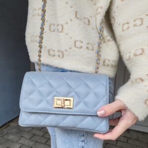 Krásna elegantná malá kožená kabelka do ruky. Vo vnútri má dve drobné vrecká. Zapínanie je zaujímavo rafinovane riešené formou uzlíka. Súčasťou kabelky je aj samostatný ramienok.